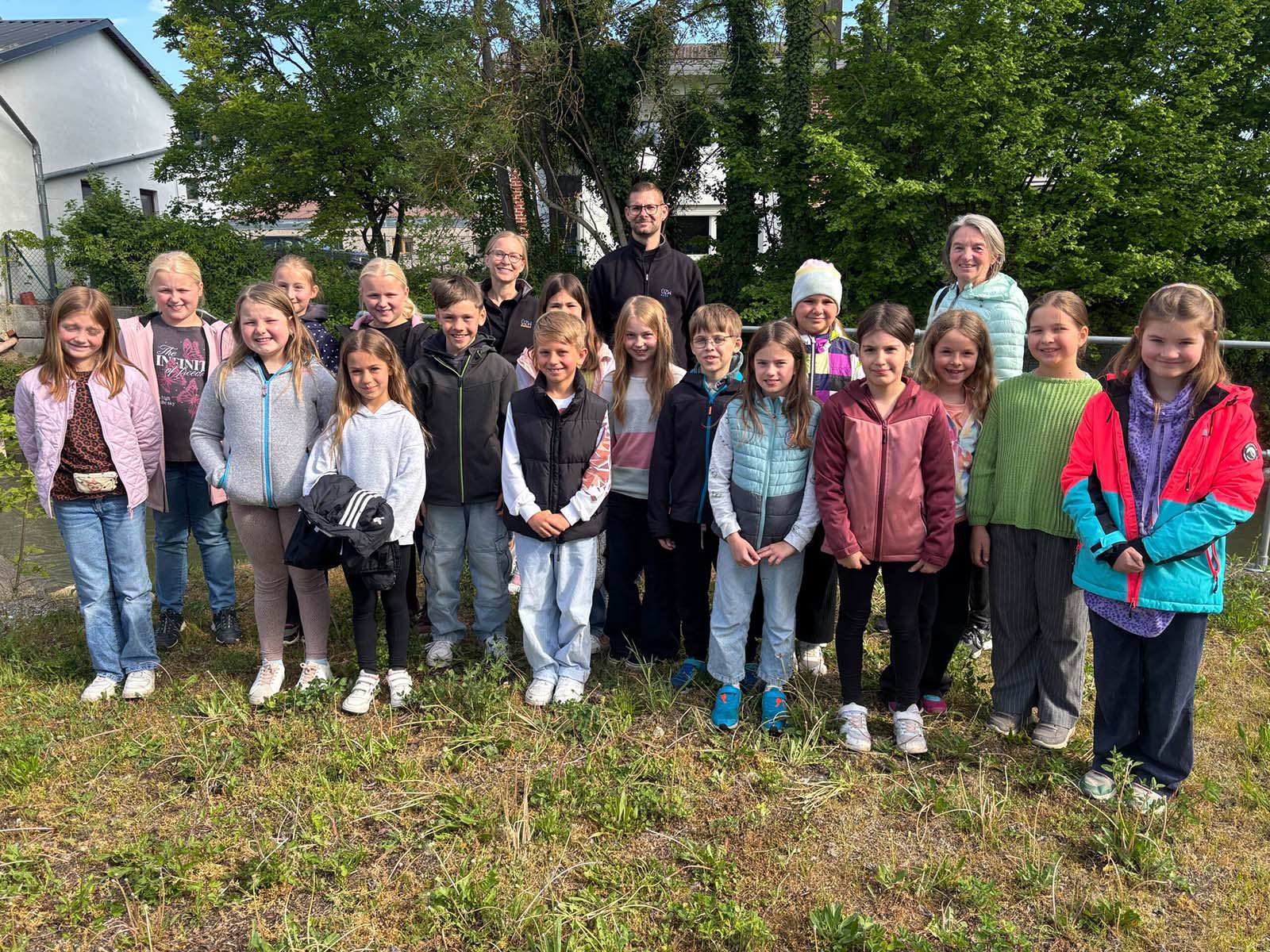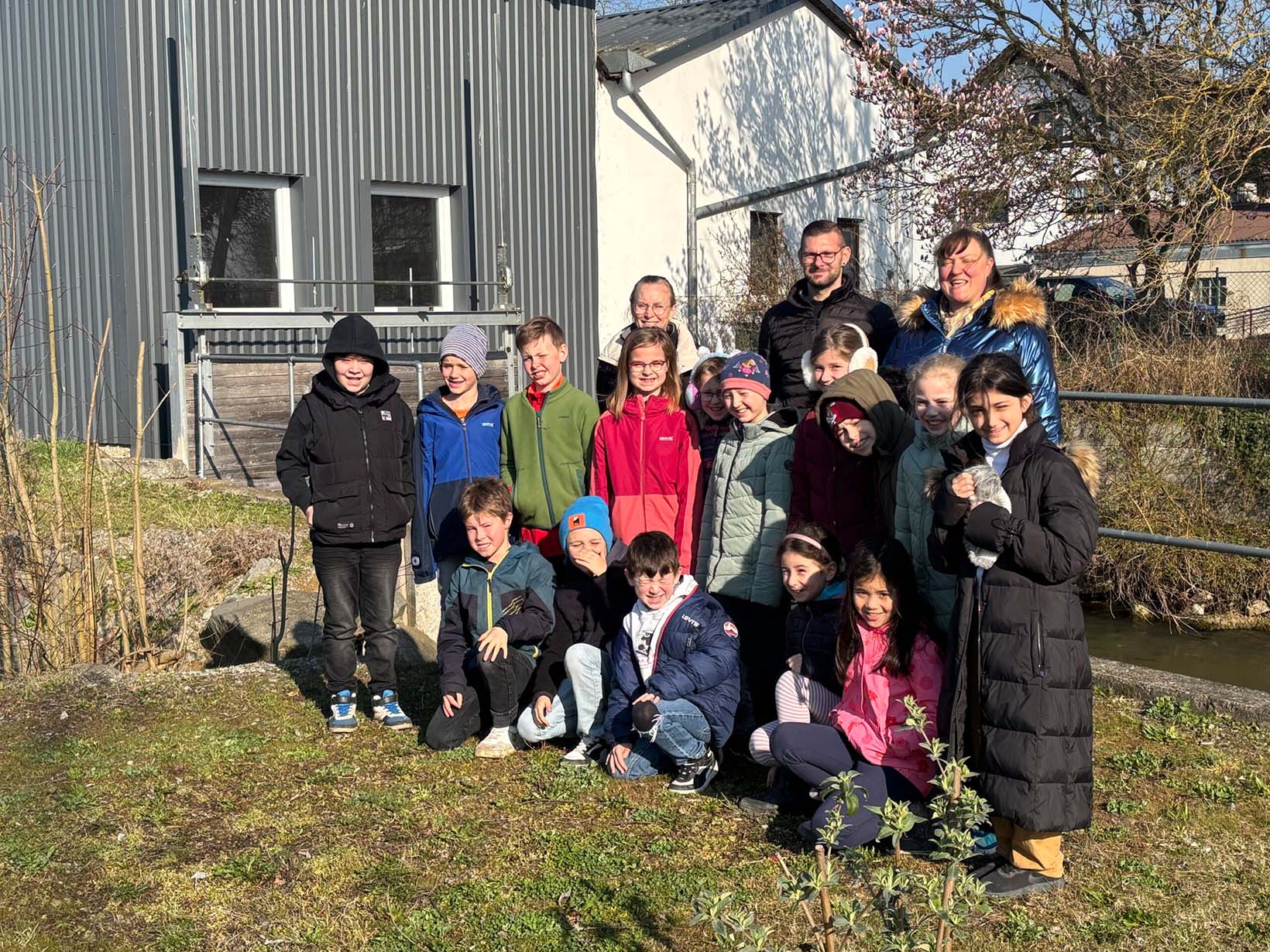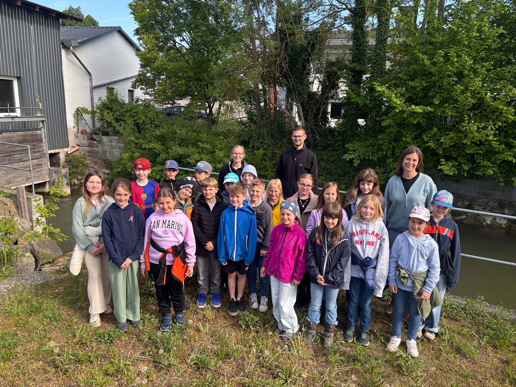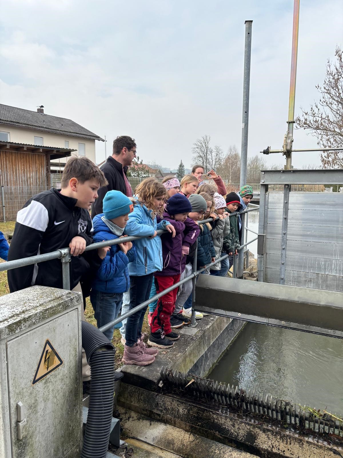 Vor Ort erfuhren die Kindern die Funktionsweise der Turbine mit Generator, sie konnten sehen, wie der Rechen den Kanal von Holz und Unrat befreit, und schauten sich die Fischtreppe an.